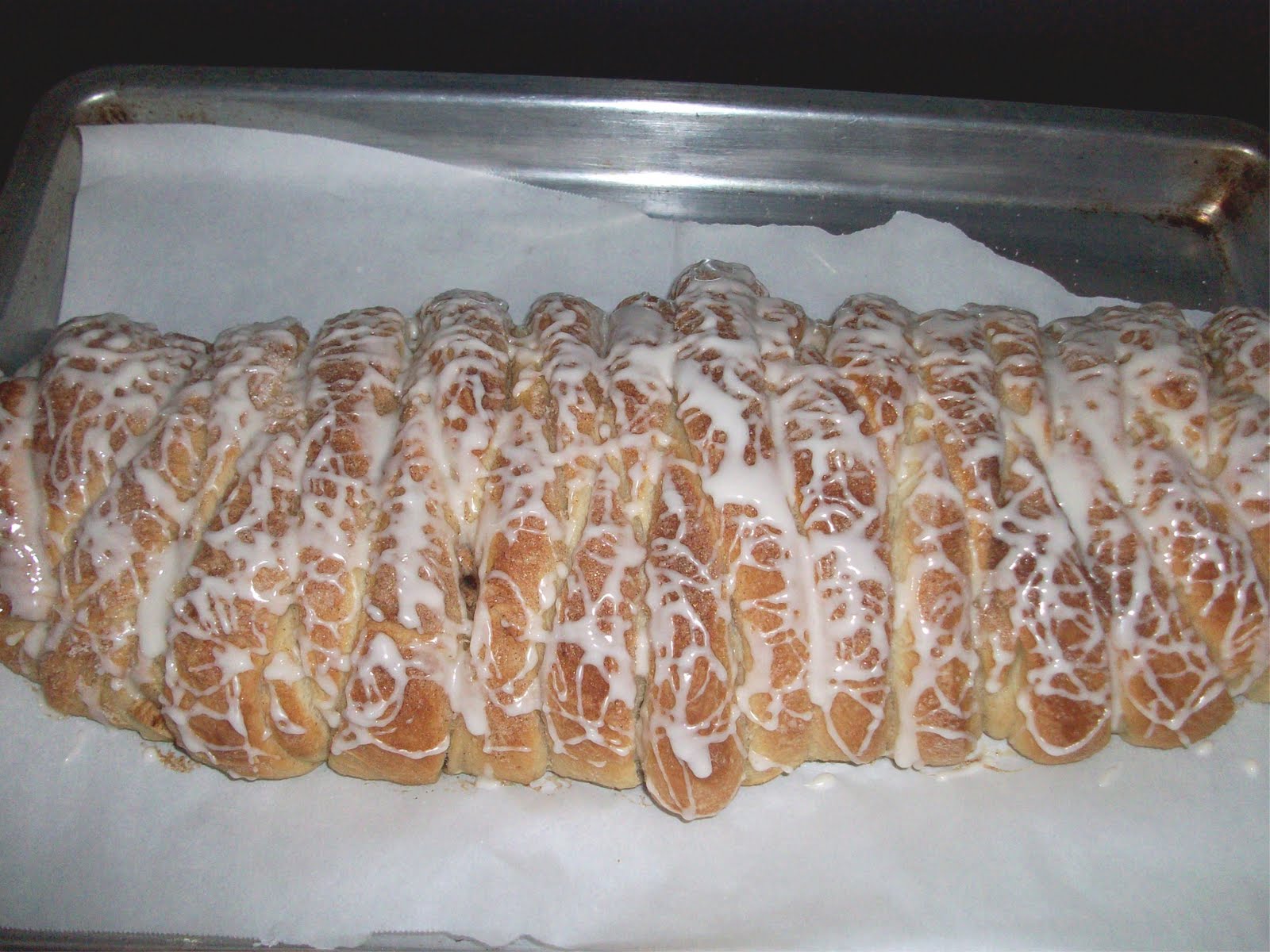 The dough recipe I used was the one in my bread machine book, but otherwise I followed the recipe for the most part. I did drizzle on a little powdered sugar glaze after it cooled.